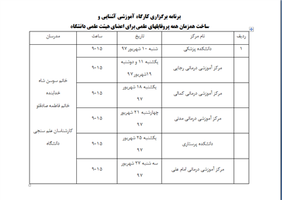 ردیف | نام مرکز | تاریخ | ساعت | مدرسان |