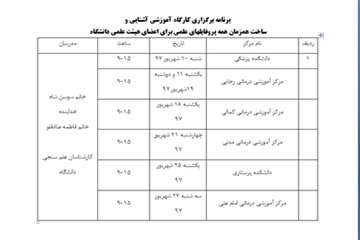 ردیف | نام مرکز | تاریخ | ساعت | مدرسان |